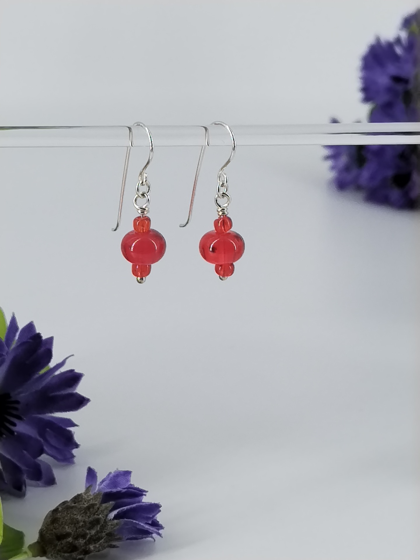 The series includes seven pairs of earrings in different colors; green, red, pink, white, clear, gray, turquoise and dark blue.