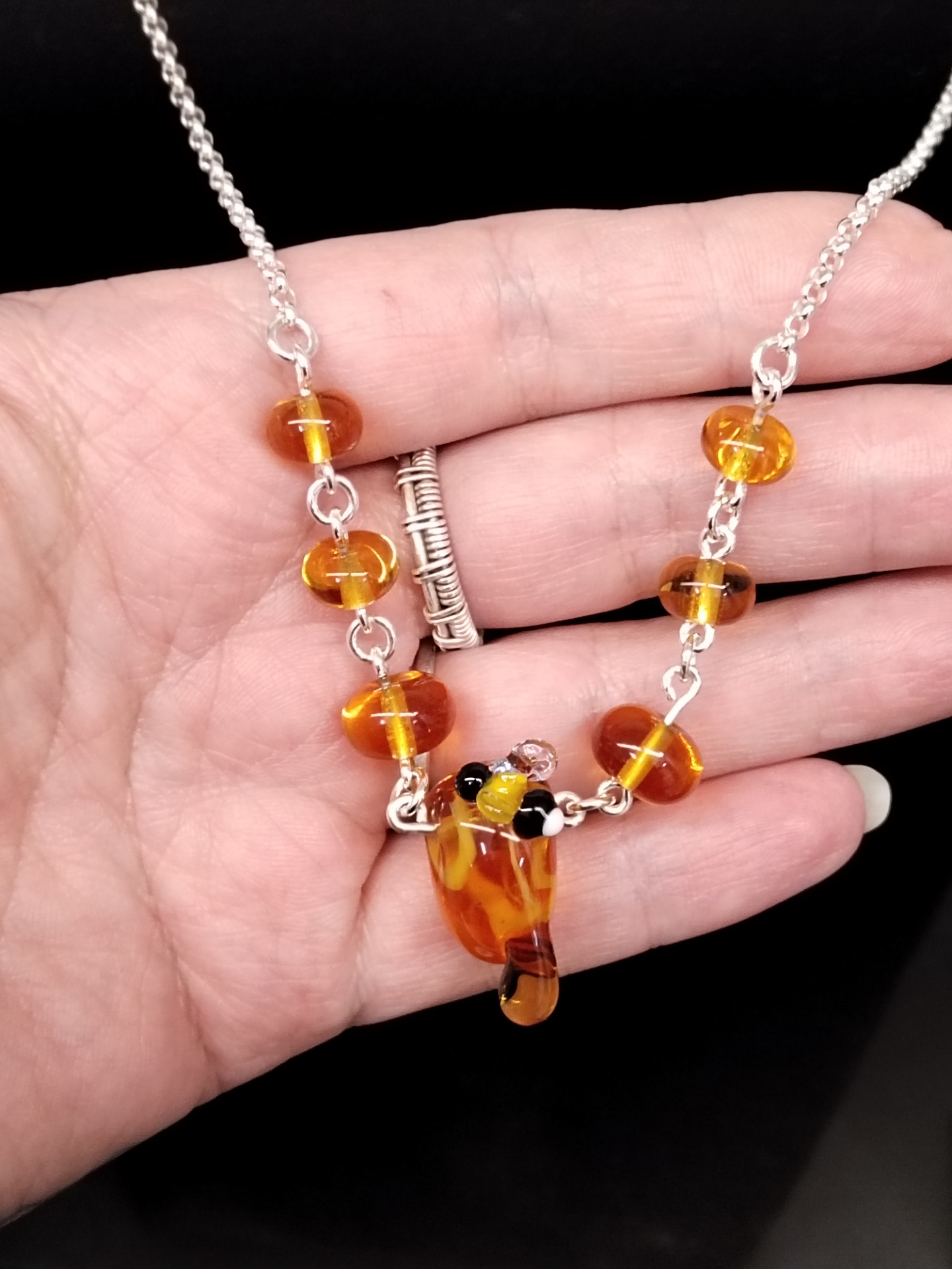 Hunajaine, herkullinen, pienten mehiläisten kunniaksi valmistettu kaulakoru.