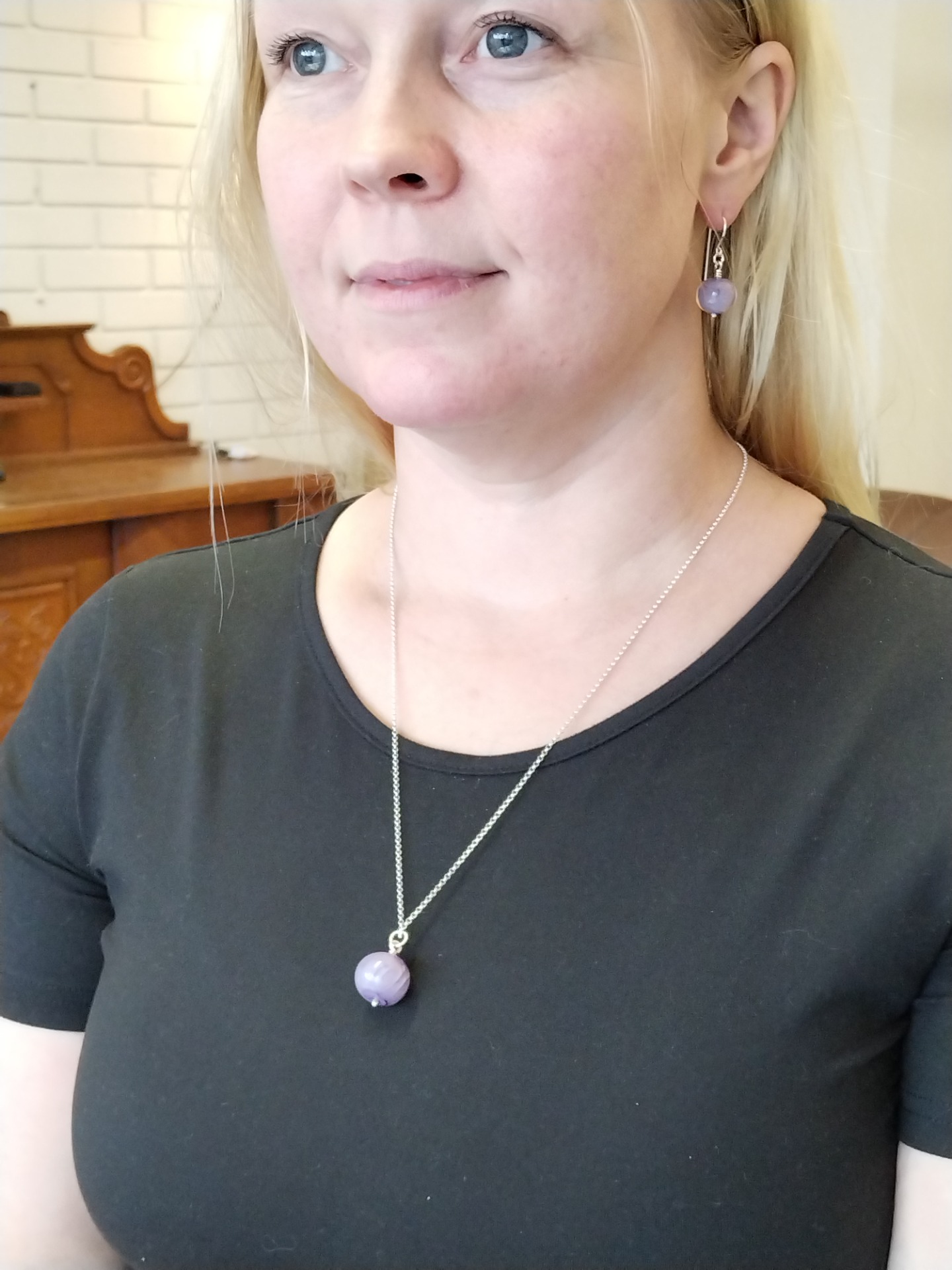Colors of Joy is a jewelry set that radiates warmth, lightness and joy of life. The jewelry in the series is handmade from colorful, hand-shaped glass beads, and they bring joy to everyday life and celebrations. You can choose from six sparkling color options: cheerful orange, charming white, sunny yellow, serene blue and fresh green and captivating purple.
