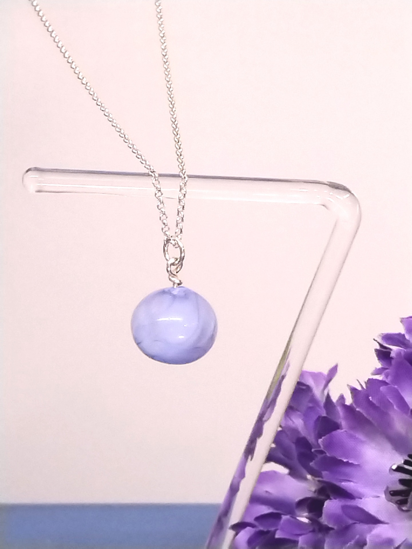 Materiaalit: Hopeaa ja käsin muotoiltua lasia.