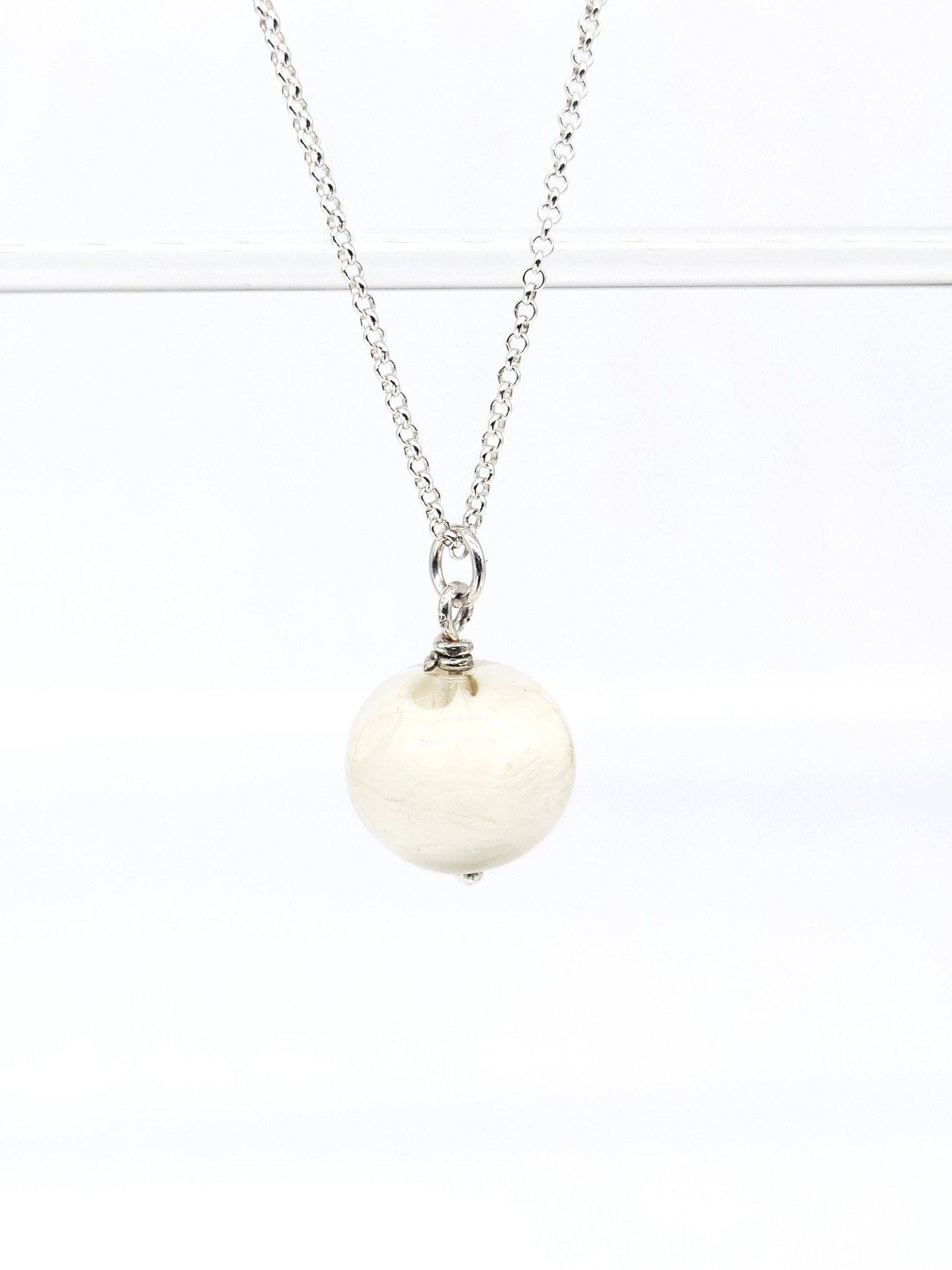 Materiaalit: Hopeaa ja käsin muotoiltua lasia.