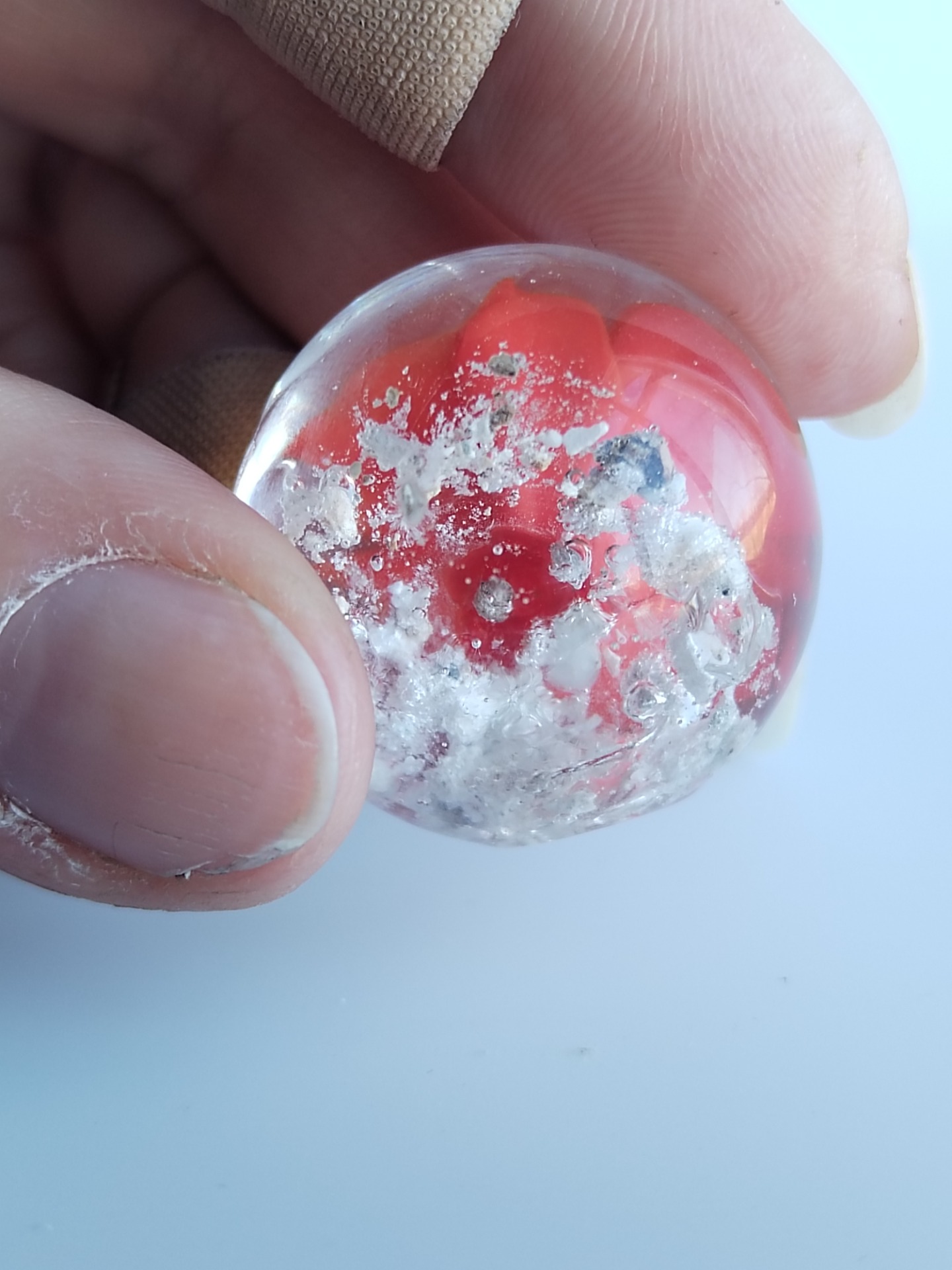 Mitat: lasipallon halkaisija n. 3-3,5 cm, jalustan korkeus 7 mm.