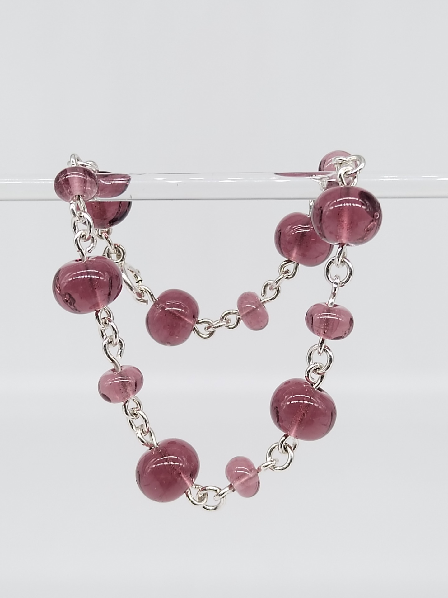 Käsin muotoillut lasihelmet, jokainen helmi on ainutlaatuinen. Ketju on valmistettu hopeasta.