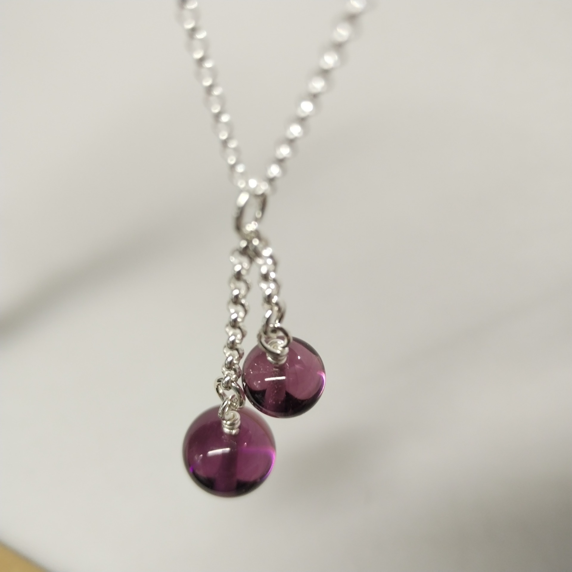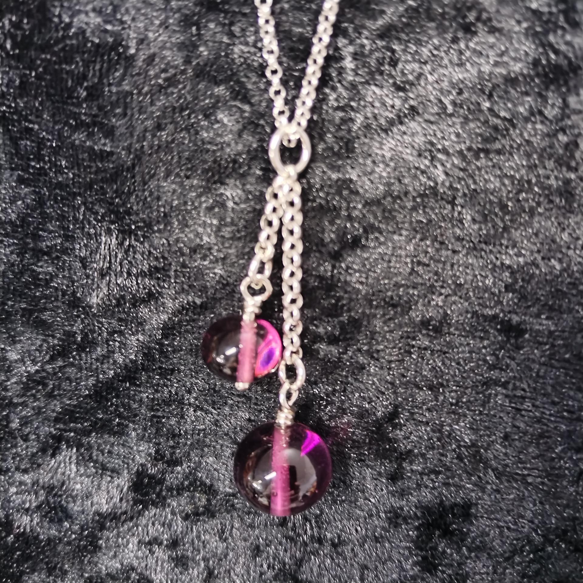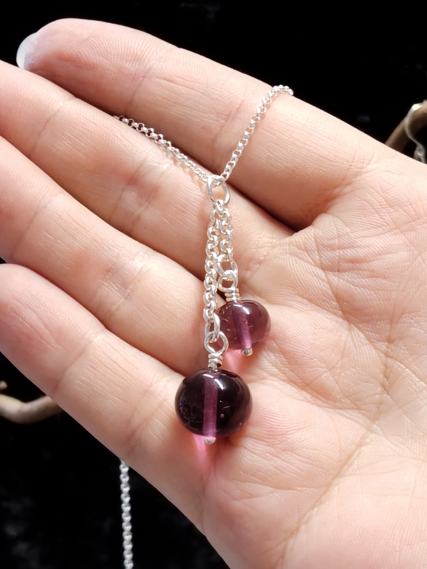 Syvä kuin meri -riipus sai alkunsa lasin väristä – siitä hetkestä, kun valo uppoaa lasiin ja paljastaa sen sisällä piilevän maailman. Jokainen helmi on sulatettu käsin, ja sen pinnan alla hehkuu meren syvä sävy.