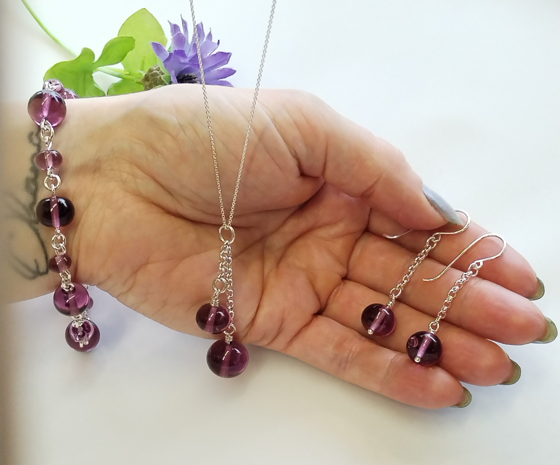 Materiaalit: käsityönä sulatettua lasia ja 925 hopeaa.